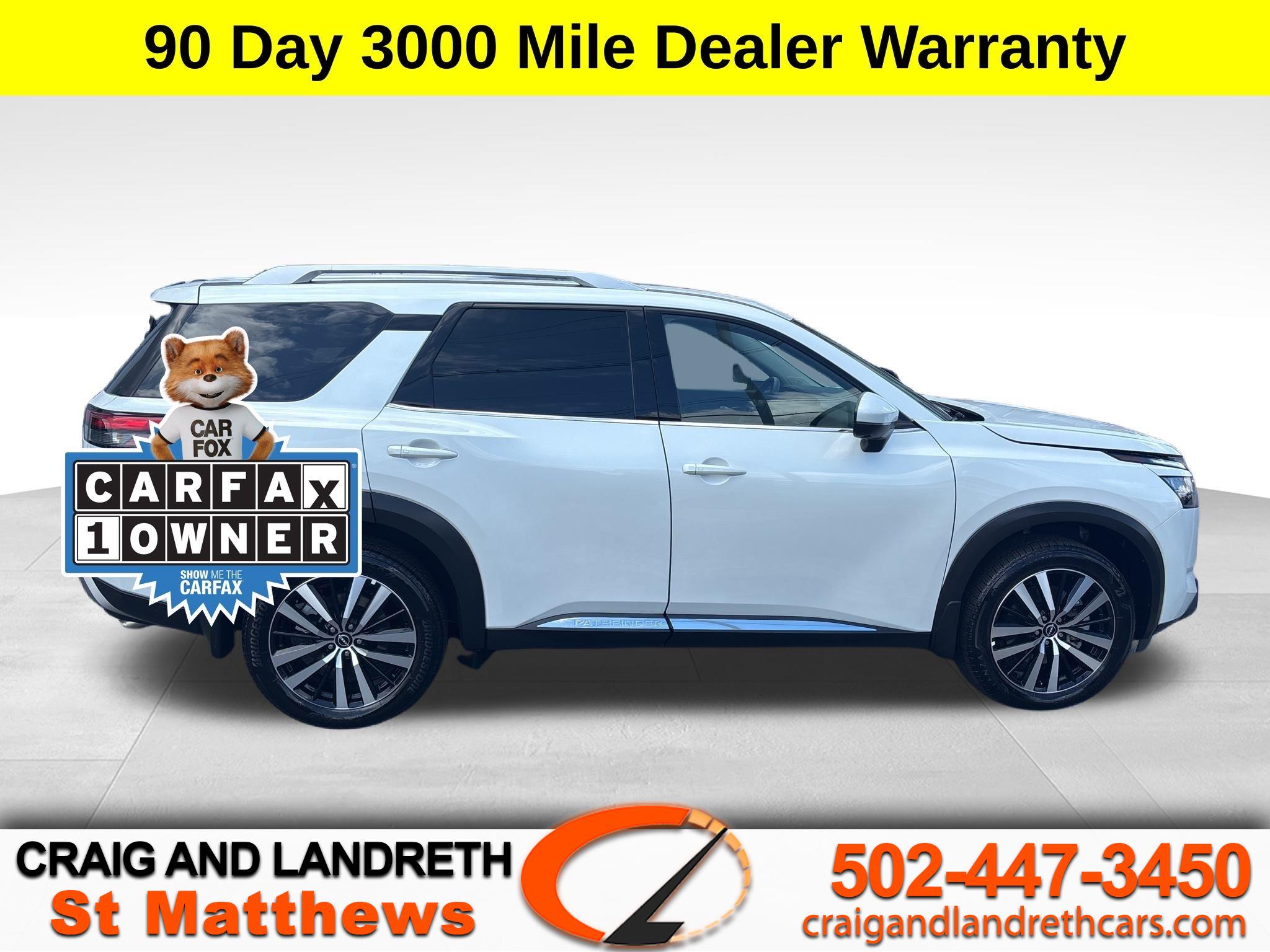 CARFAX One-Owner. Clean CARFAX. Everest White Pearl Tricoat FWD 2025 Nissan Pathfinder Platinum 3.5L V6 DOHC 20/27 City/Highway MPG